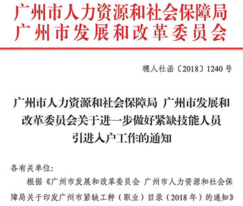 具有廣東省或廣州市人力資源和社會保障部門頒發的高級工(三級)職業資格證書,屬于緊缺工種,高中或同等學歷起,在廣州連續居住、就業及參保滿2年,年齡35周歲以內。...